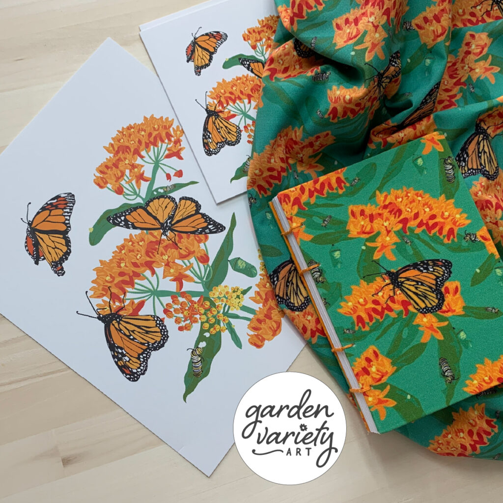 I’m an artist and surface pattern designer in Bloomington, Minnesota, and grow many of the native plant species featured in my artwork. A variety of birds, bees, butterflies and other wildlife that depend on them visit or live in my suburban yard through the seasons. Even more species of flora and fauna can be found in nearby natural areas, once part of the continuous natural tapestry of life in the Upper Midwest. Through my art and habitat gardening I try to enhance my own connection to this landscape, and share the joy and wonder I find in it.